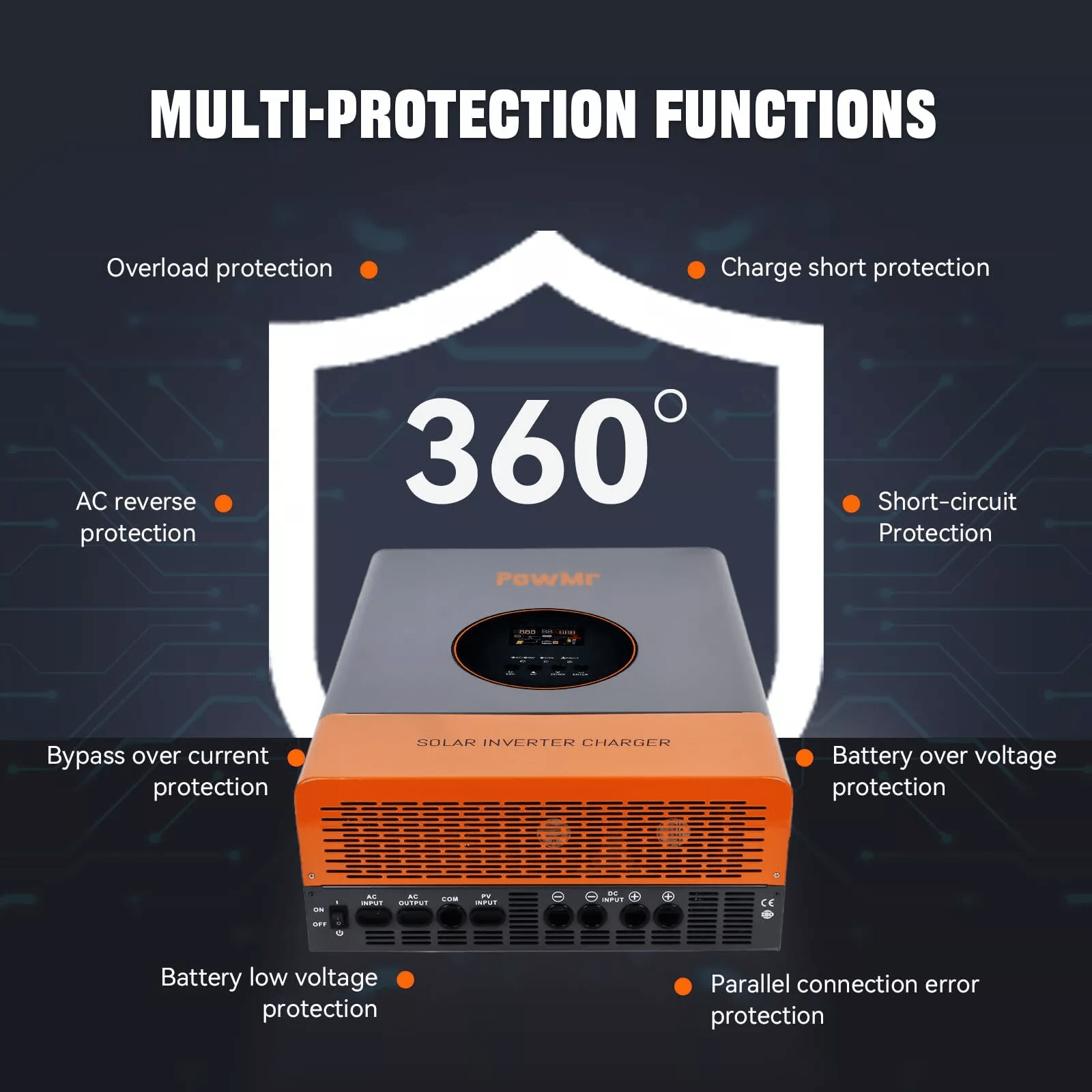 Note:This is PowMr’s latest low-frequency hybrid inverter, which is suitable for most residential and commercial scenarios, and can guarantee higher output stability and reliability.