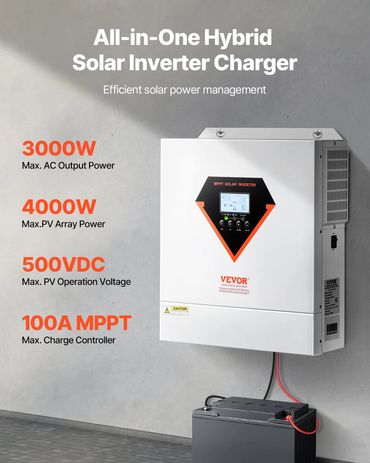 Este inversor todo-en-uno combina inversor, cargador y controlador solar MPPT en un solo equipo compacto. Ideal para sistemas solares residenciales, backup eléctrico, RV, cabañas, fincas, talleres y aplicaciones off-grid.